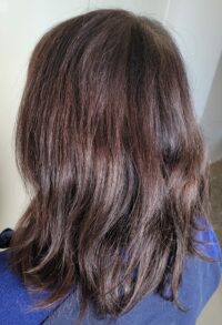 Die Haarstruktur ist nach der ersten Behandlung bereits völlig anders als mit chemischer Farbe. Vorher „struppig“, jetzt weicher. Glanz und Fülle ein Traum! Ich verwende allerdings ausschließlich Produkte von Noelie.